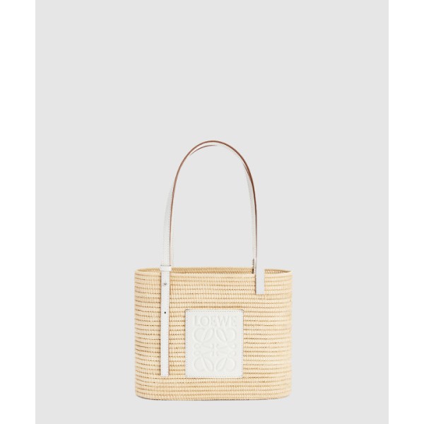 스몰 스퀘어 바스켓 백 - 라피아 & 카프스킨