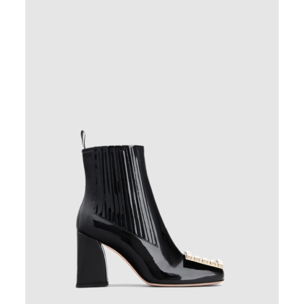 트레 비비에 스트라스 버클 에나멜 앵클 부츠 5222