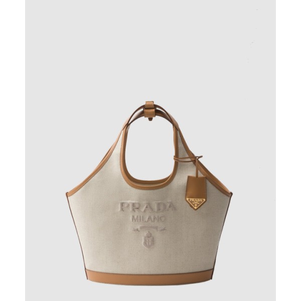 미디엄 리넨 혼방 및 가죽 토트백 1BG471