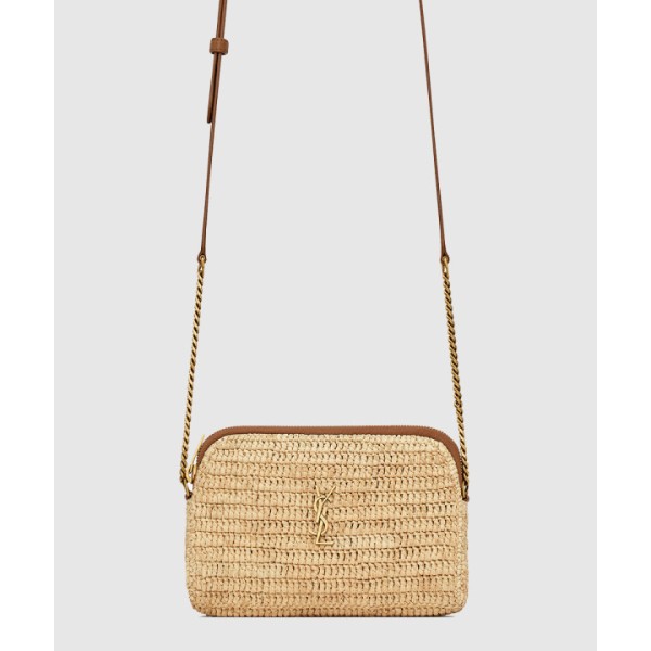 라피아 및 베지터블 태닝 가죽 소재의 GABY 지퍼 파우치 774293