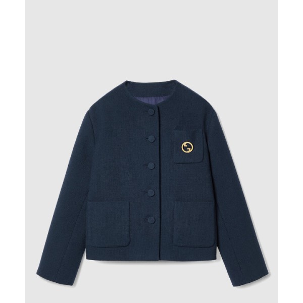 브로치 디테일의 코튼 트위드 재킷