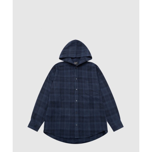체크 후드 셔츠 코트