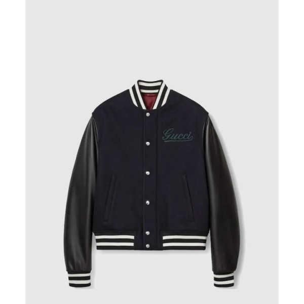 울 가죽 바시티 자켓