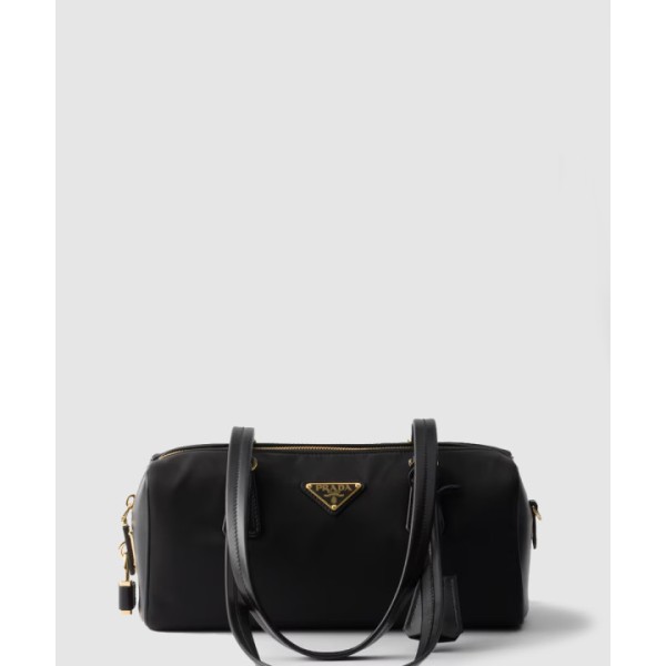 자물쇠가 있는 미디엄 리나일론 및 가죽 탑 핸들백 1BB127
