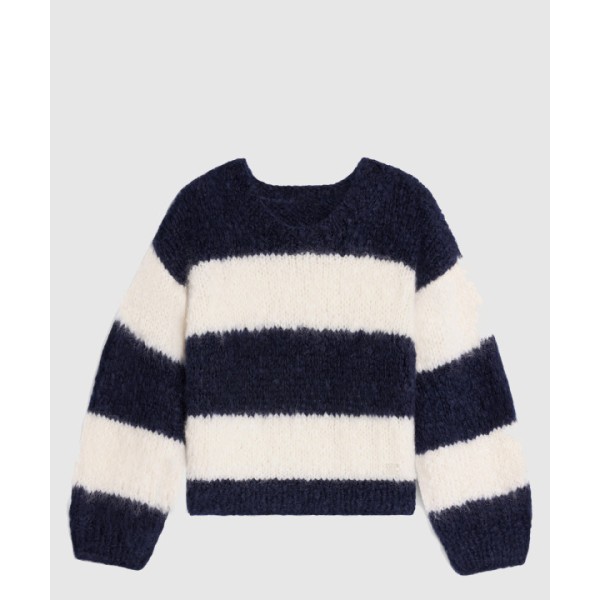 스트라이프 모헤어 울 스웨터