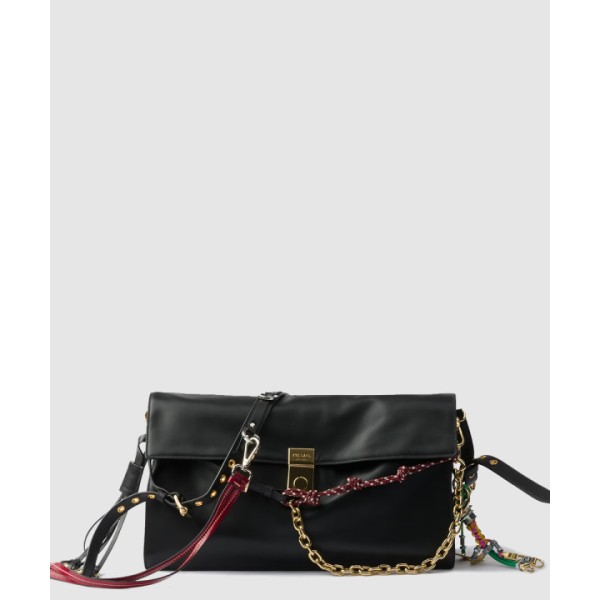 참이 달린 라지 프라다 소프트 사운드 가죽 숄더백 1BD379