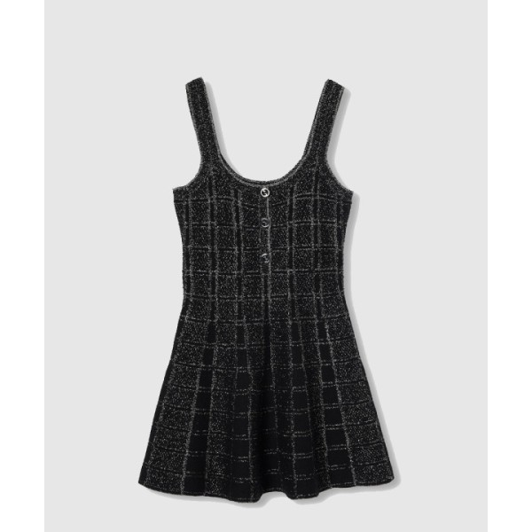 울 및 라메 체크 자카드 드레스