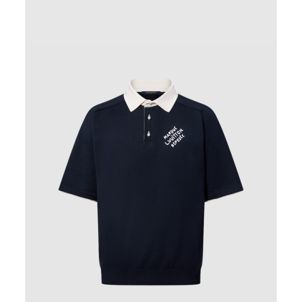 엠브로이더드 쇼트 슬리브드 코튼 블렌드 폴로 셔츠