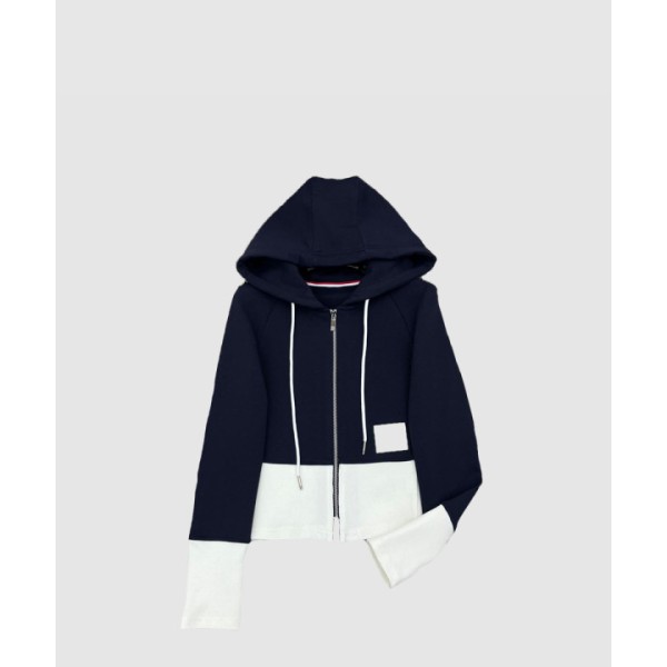 톰 로고 패치 지퍼 후드 티셔츠