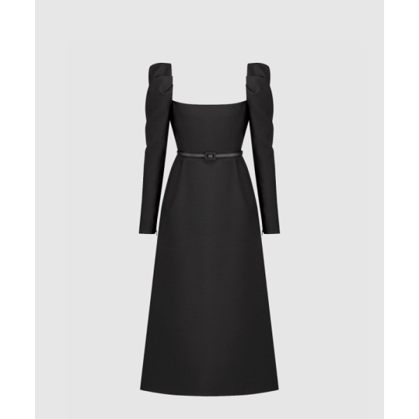 벨트 미디 드레스
