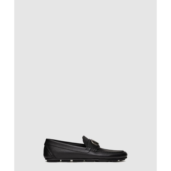 브이 로고 송아지 가죽 드라이빙 슈즈