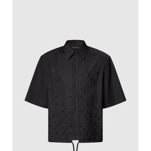 모노그램 플라워 엠브로이더드 쇼트 슬리브드 셔츠