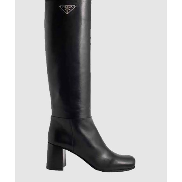로고 브러쉬드 가죽 롱 부츠 1W931M