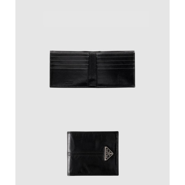 삼각 메탈 로고 플랩 가죽 지갑 2M0513