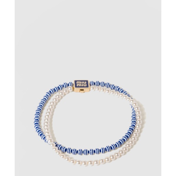 스트라이프 볼 진주 이중 목걸이 5IC102