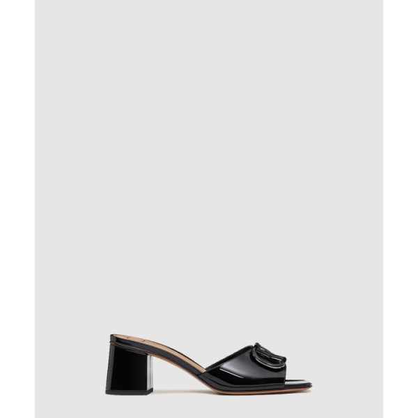 브이로고 시그니처 페이턴트 가죽 슬라이드 샌들 3W2S0H