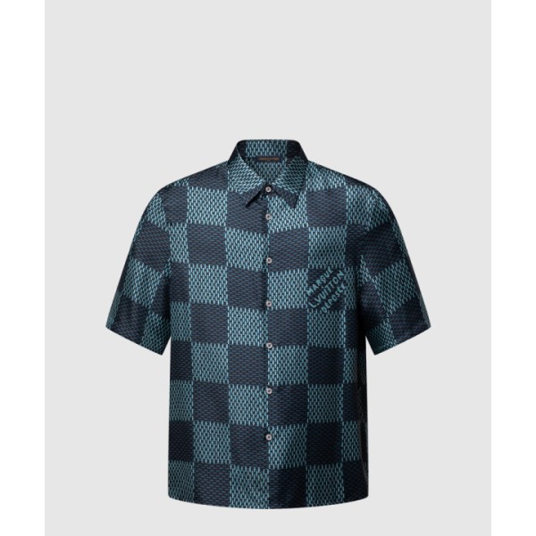다미에 반팔 실크 셔츠
