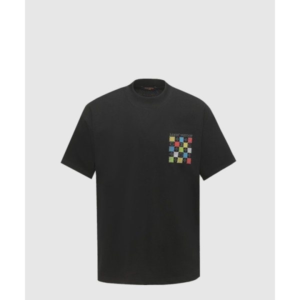 컬러 체크 모노그램 로고 반팔티