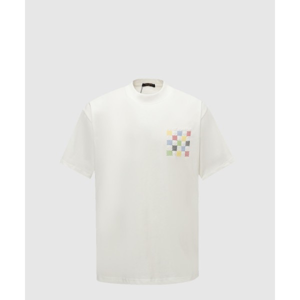 컬러 체크 모노그램 로고 반팔티