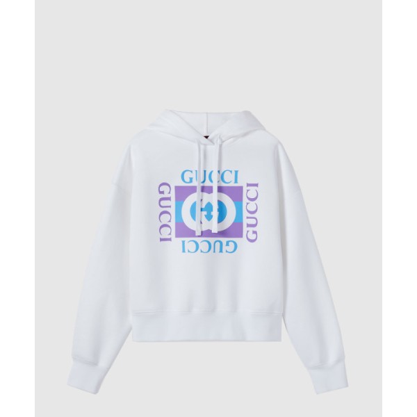 프린트 디테일의 코튼 후드 스웨트셔츠