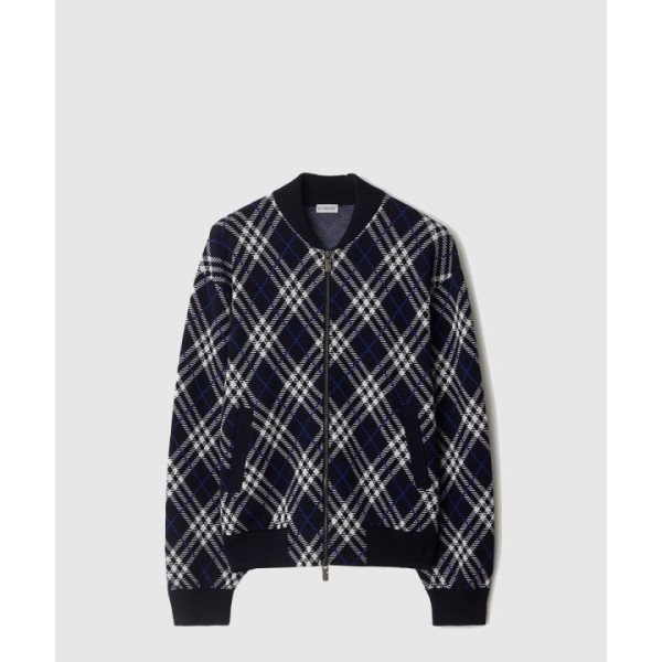체크 울 블렌드 보머 재킷