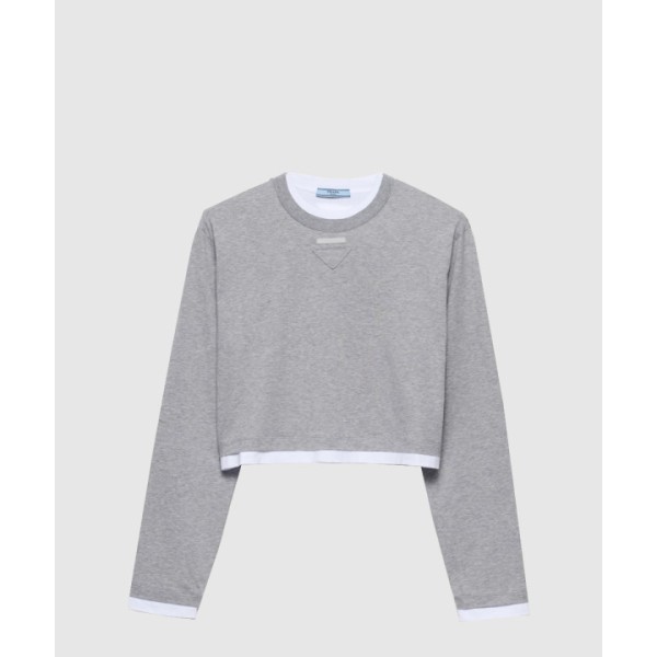 긴 소매 코튼 저지 티셔츠