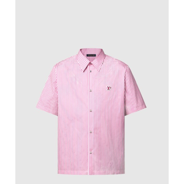 모노그램 스트라이프드 쇼트 슬리브드 셔츠