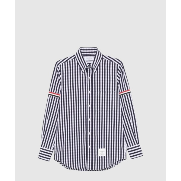 깅엄 체크 포플린 암밴드 셔츠