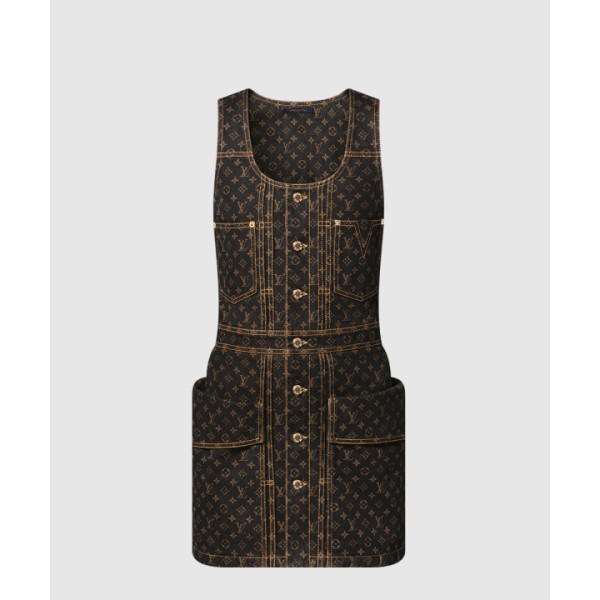 모노그램 데님 버튼 프론트 드레스