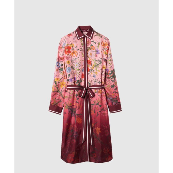 프린트 실크 트윌 셔츠 드레스
