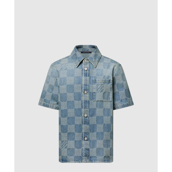 다미에 3D 라이트 데님 쇼트 슬리브드 셔츠