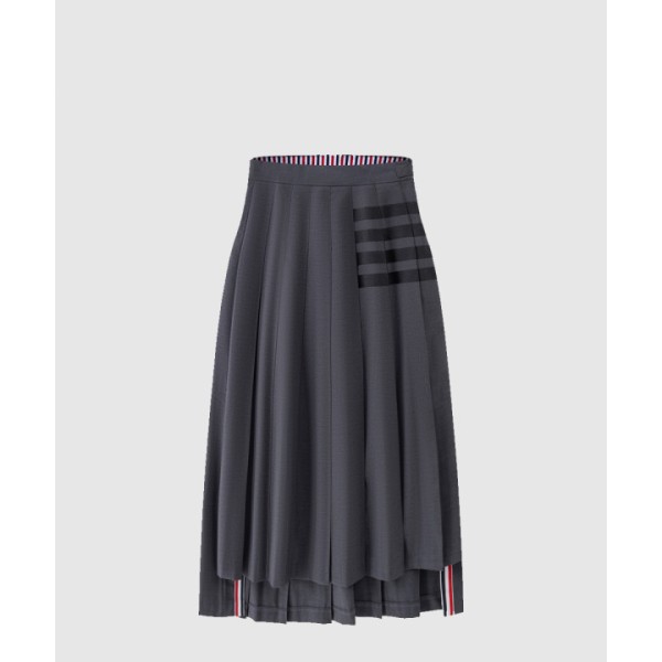 플레인 위브 4바 플리츠 미디 스커트