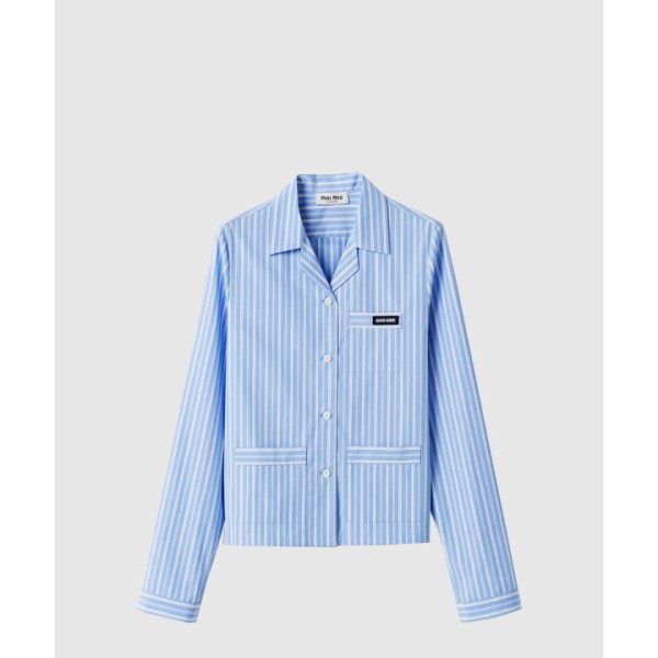 스트라이프 포플린 파자마 셔츠