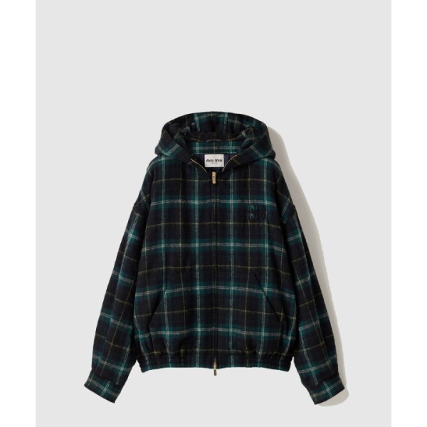 체크무늬 후드 재킷
