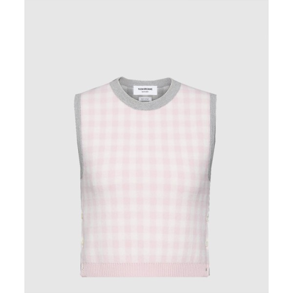 펀믹스 깅엄 체크 자카드 메리노 울 쉘 탑