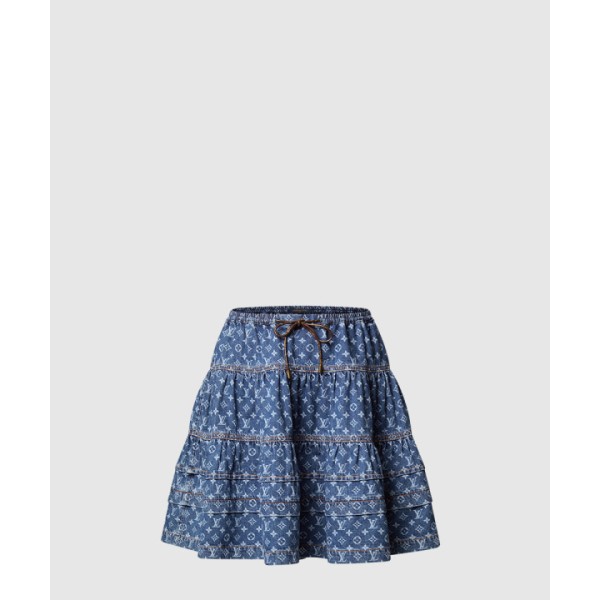 모노그램 데님 티어드 스커트