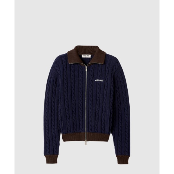 울 및 코튼 지퍼 가디건
