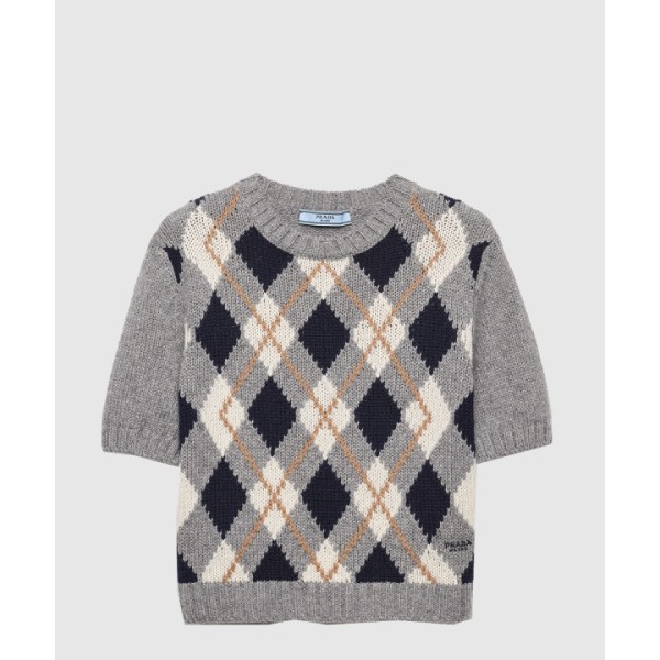 쇼트 슬리브 아가일 니트 캐시미어 스웨터