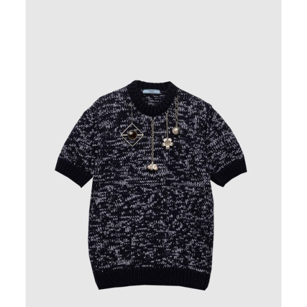 쇼트 슬리브 울 스웨터 펜던트 장식