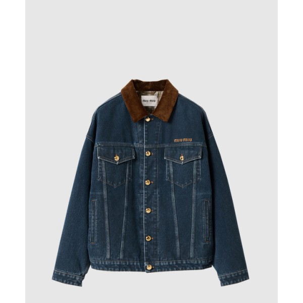 플로킹 데님 벨벳 블루종 재킷