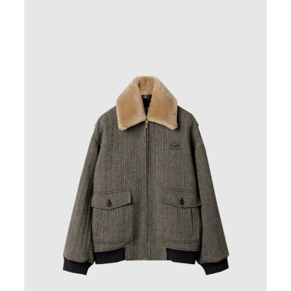 시어링 칼라 셰브론 블루종 재킷