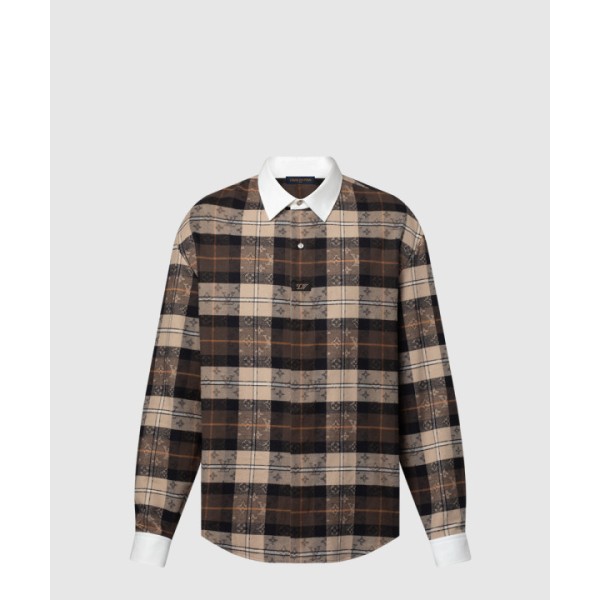 모노그램 플란넬 롱 슬리브드 폴로 셔츠