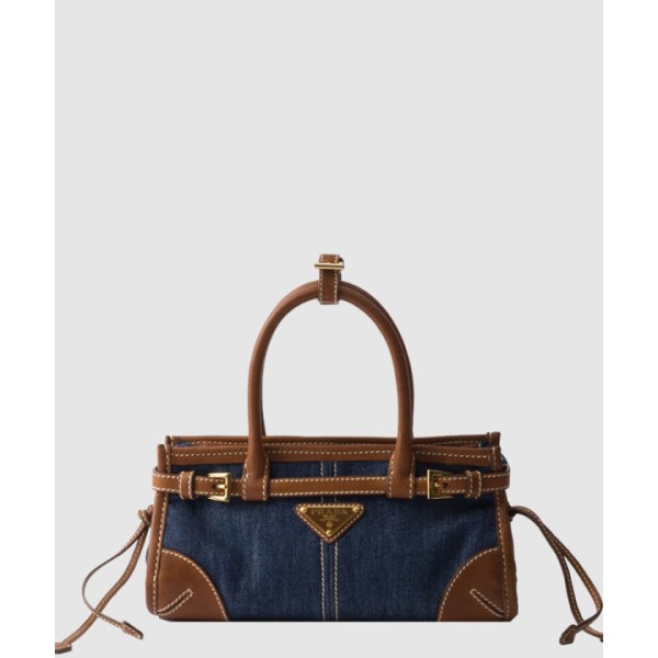 Bonnie스몰 데님과 가죽 패치 클러치 1BA486
