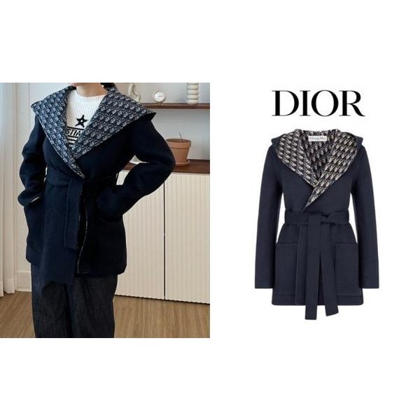 블루 컬러의 경량 양면 울소재로 타이 벨트가 웨이스트를 강조하고