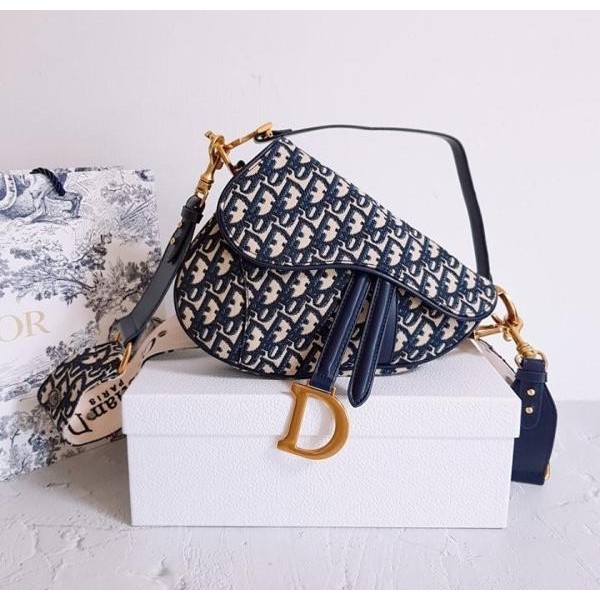 • 디* 고급 오블리크 클래식 네이비 미듐 새들백