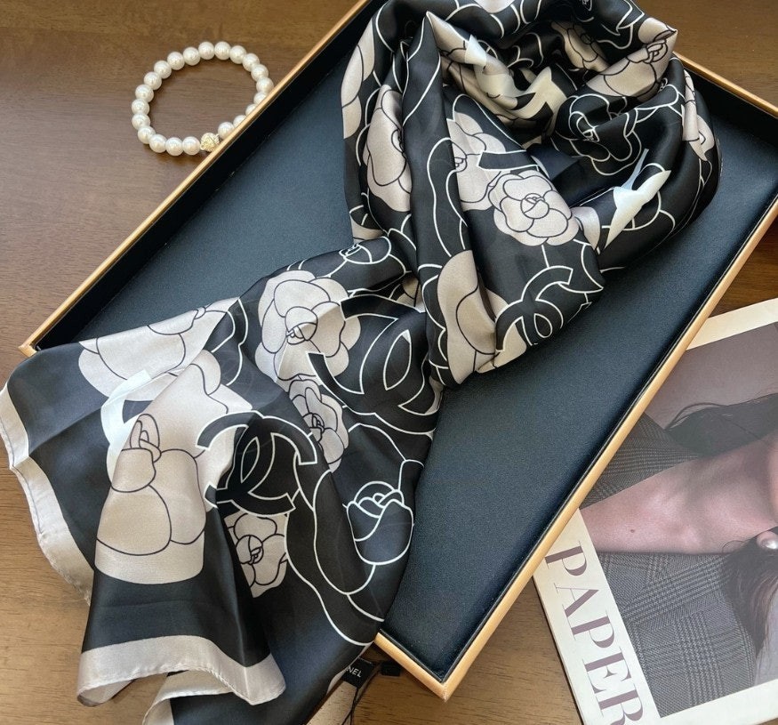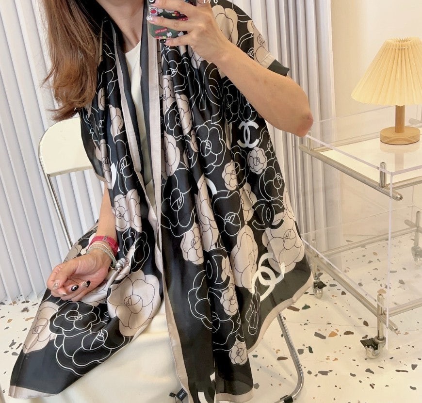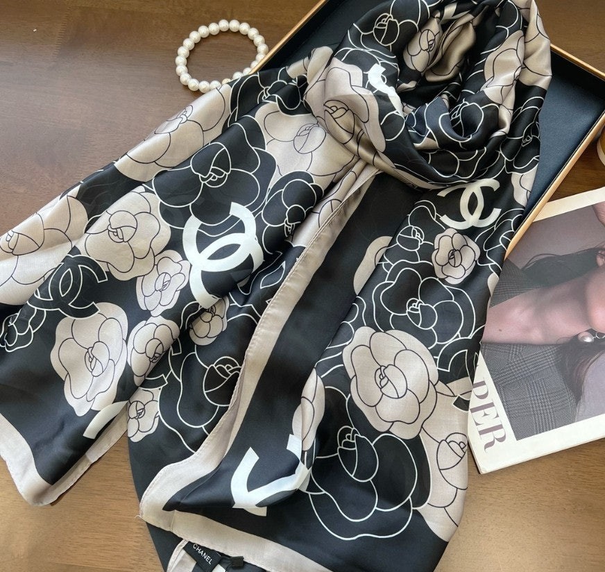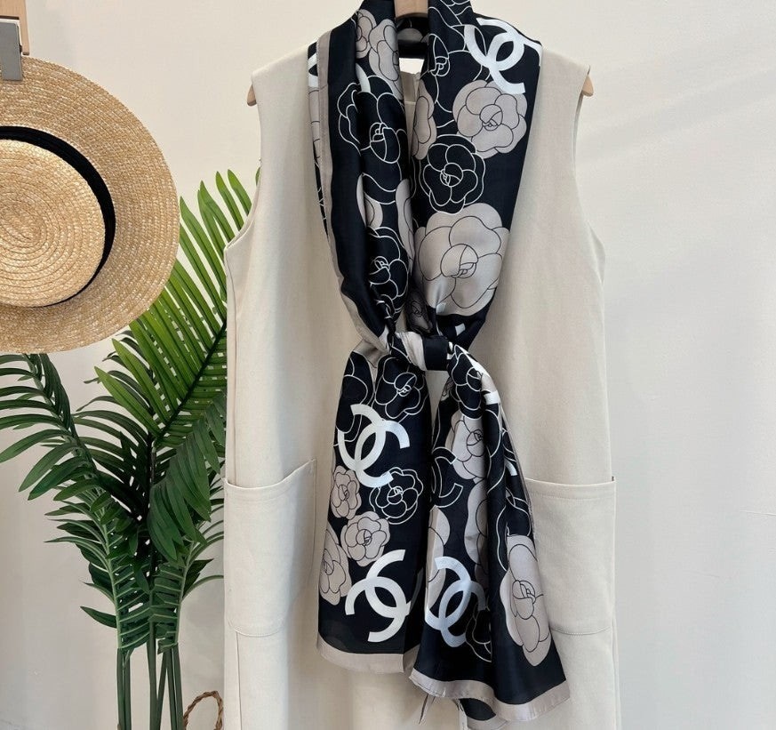 샤* 까멜 플라워 실크 스카프