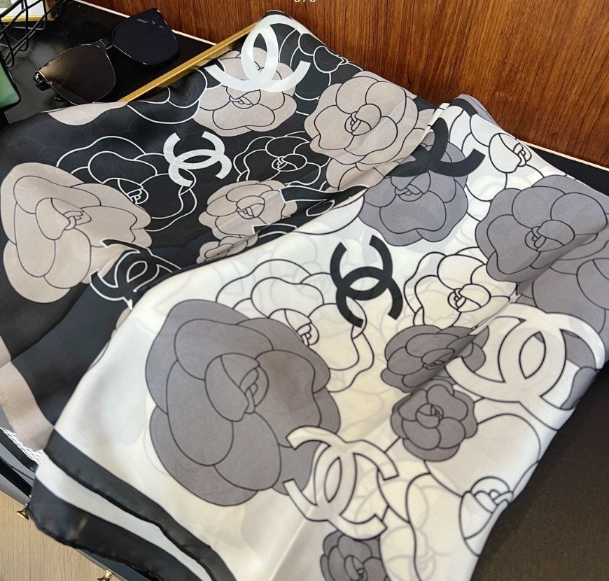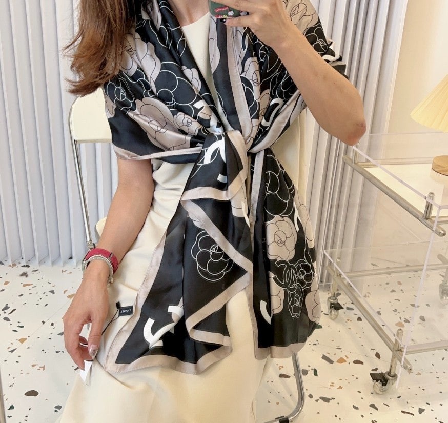 • 샤* 까멜 플라워 실크 스카프