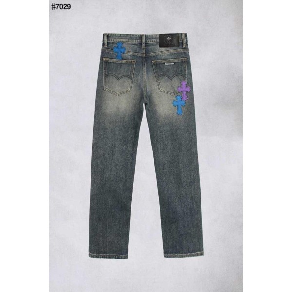 크* 컬러풀 세메터리 레더 패치 워싱 데님 팬츠