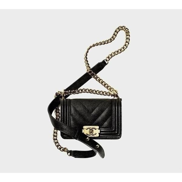 • 샤* 보이백 미니 쉐브론 금장
