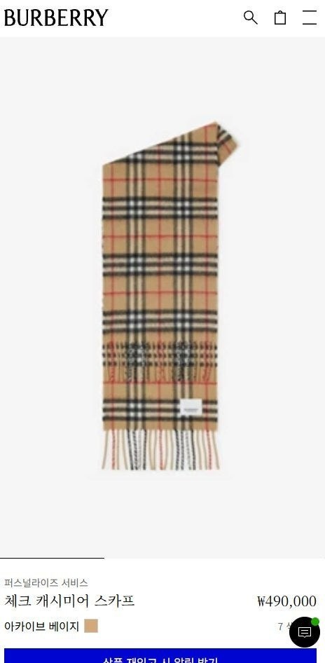 • 버** 체크 캐시미어 스카프 베이지 키즈용